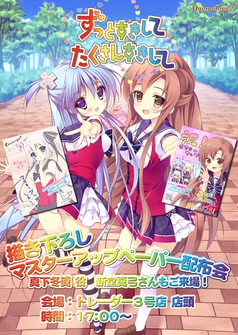 游戏名称:ずっとすきしてたくさんすきして 游戏厂商:onomatope* 原画:しらたま、開栓注意、星クズの夜(SD原画) 游戏类型:ADVずっとすきしてたくさんすきして (kiss me kiss to you) 音楽・サウンド ずっとすきしてたくさんすきして (onomatope*) 好評発売中 OPテーマ kiss me kiss to you Vo 甲 ずっとすきして たくさんすきして – Thoughts Posted on by Asheld Basing solely off the title you can already see that they're doing nothing to hide how much sugary love the story contains Though I only ended up managing to finish one route